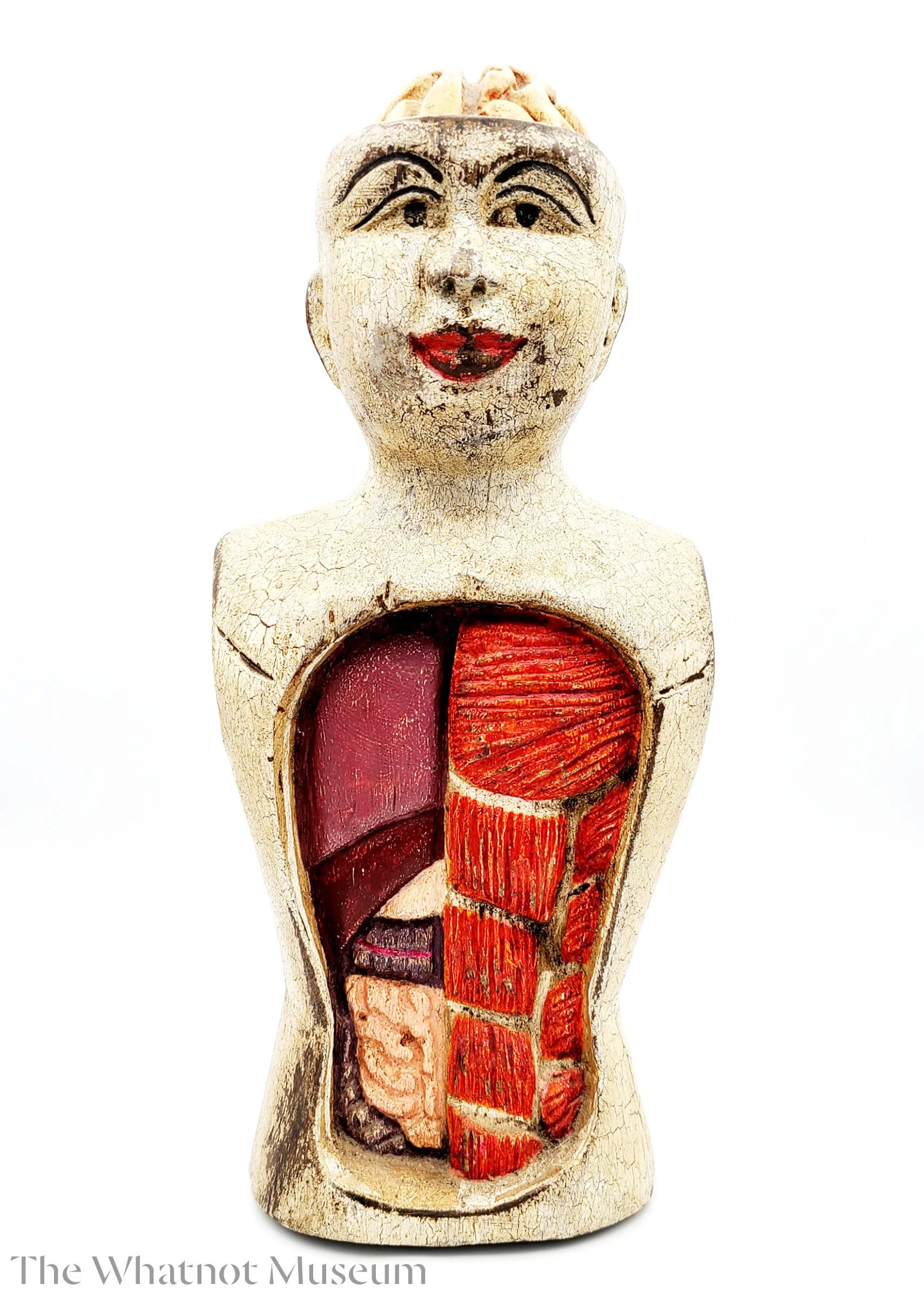 The museum collects a range of anatomical models designed to help students learn about the human body. These items are valued for their realistic detail, artistry, and historical importance in shaping medical education and practice.