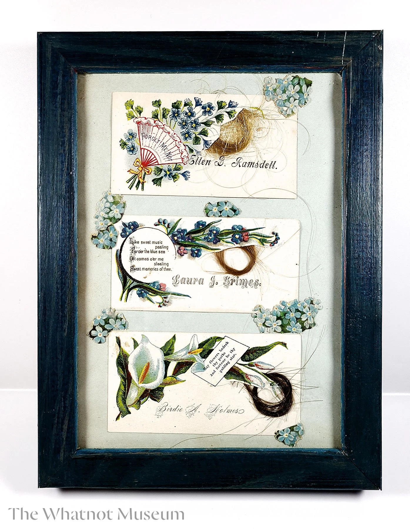 For centuries, people in Western culture have used art to remember and honor loved ones who passed away. They created keepsakes like photos, embroidery, paintings, jewelry, and even items made from the person’s hair. While these practices might seem unusual today, they were powerful ways to show love and grief. These objects remind us how people’s views on death and mourning have changed over time.
